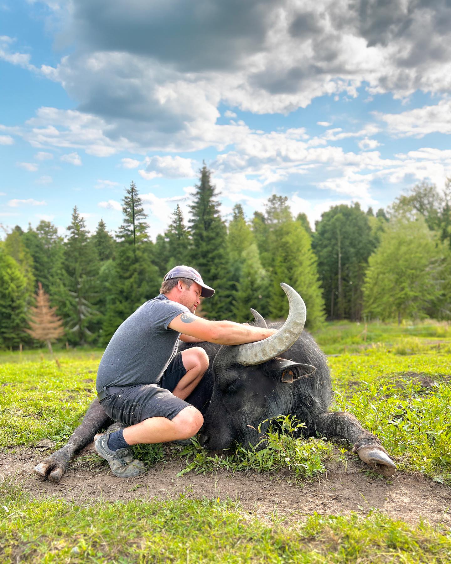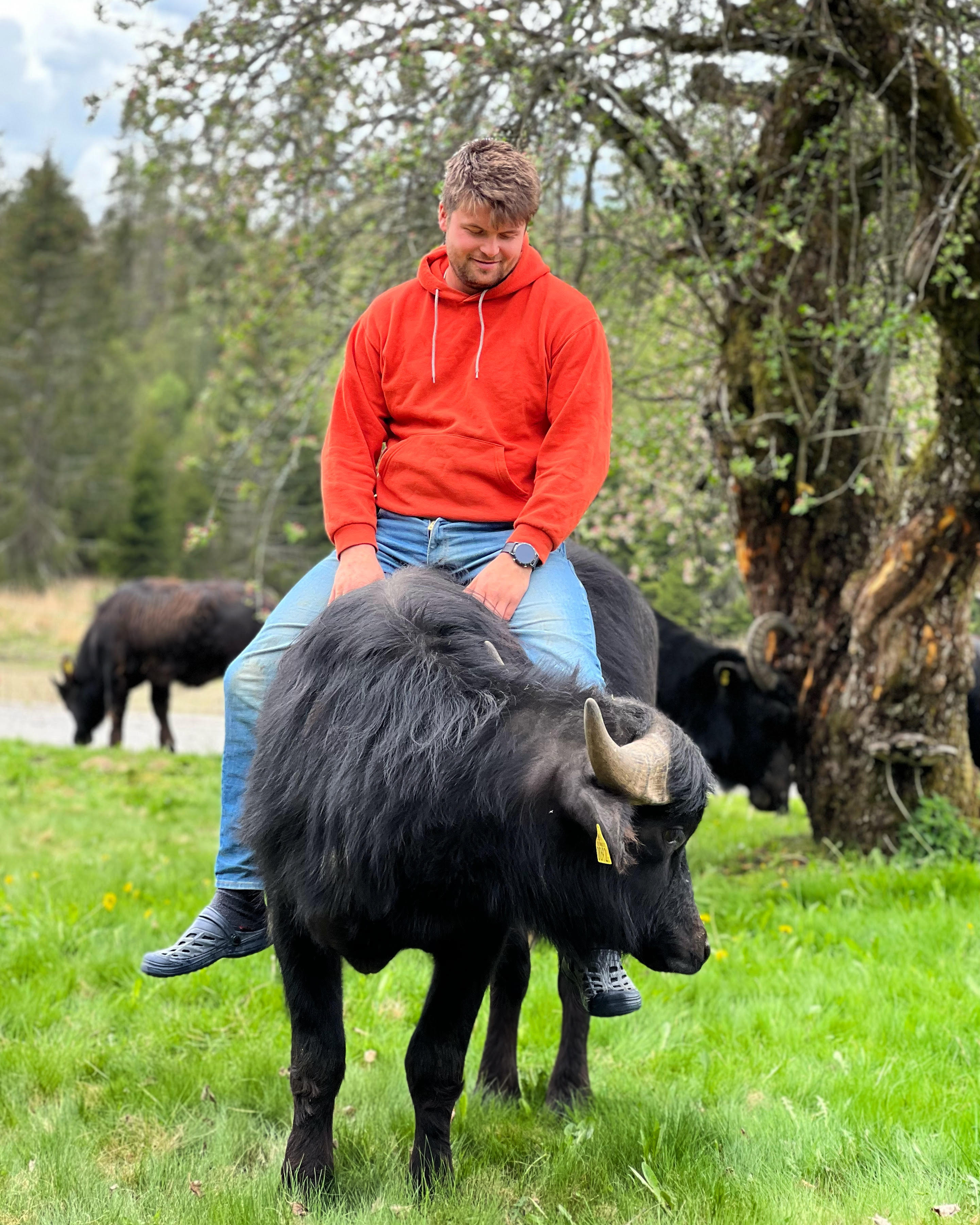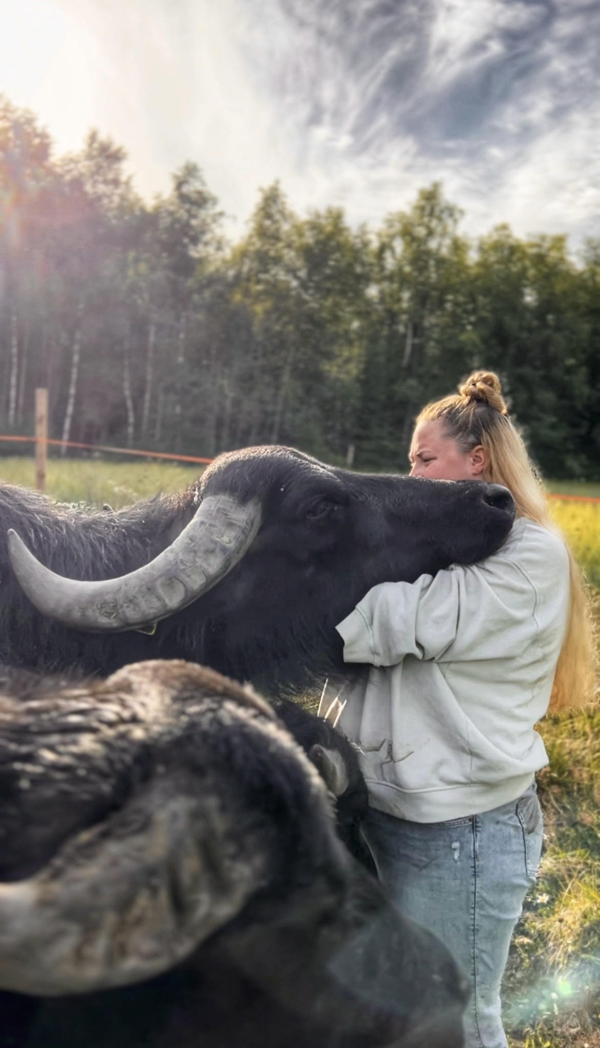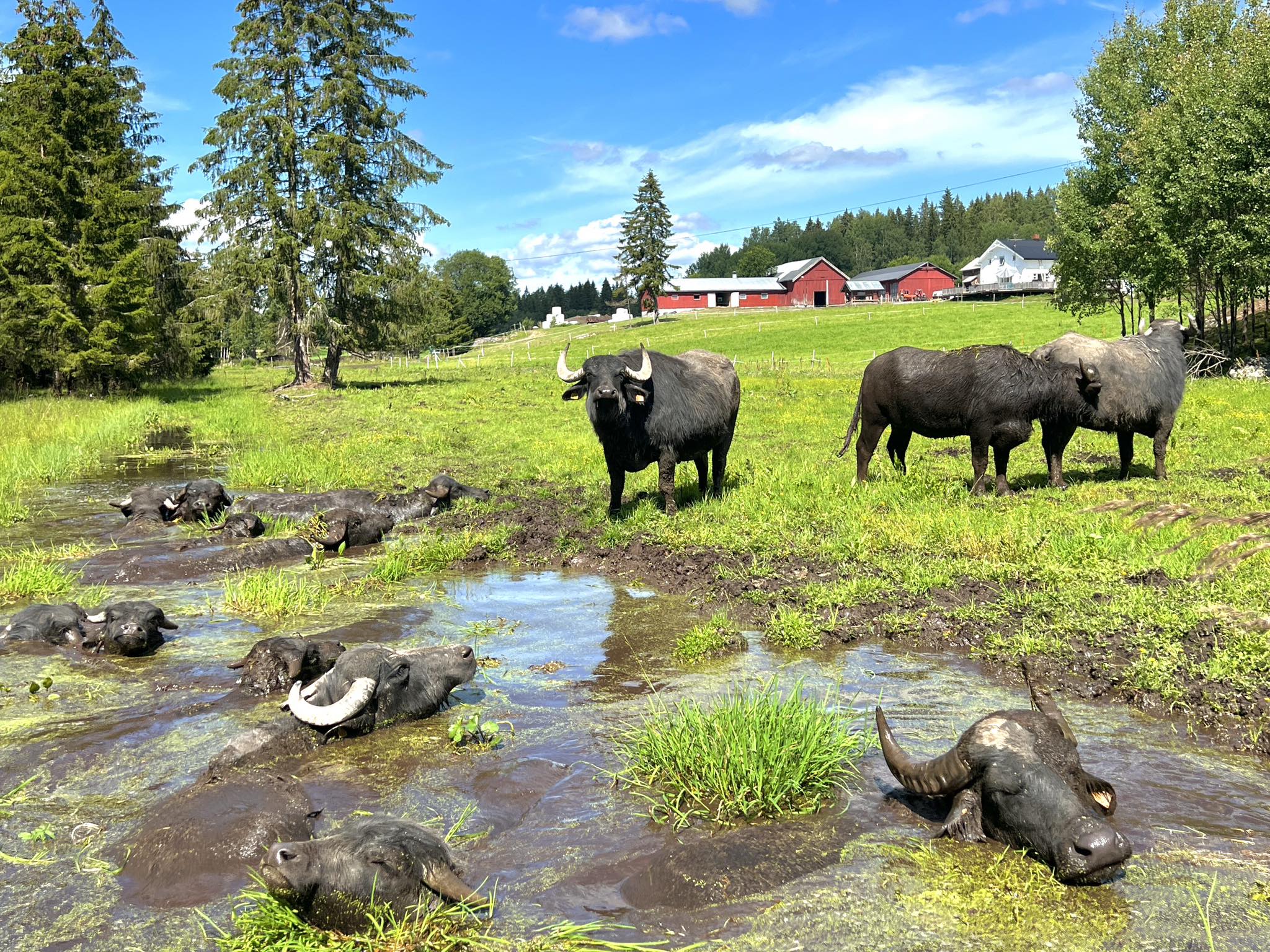 Kort fortalt: I 2021 klarte Thea å overtale en litt skeptisk Håkon Marius til å importere en flokk vannbøfler. Etter flere måneder med søknadsprosesser og en relativt stor papirmølle, ankom åtte vannbøfler Norge. I dag har antallet økt til 19 vannbøfler.